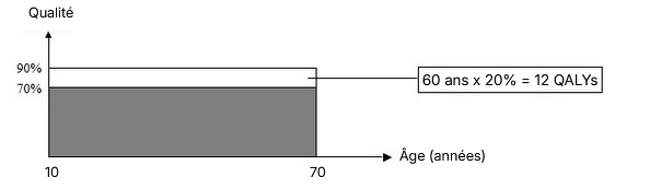 Intervention 2 : ajouter dix années de vie supplémentaires à une personne qui a une qualité de vie à 70 % :